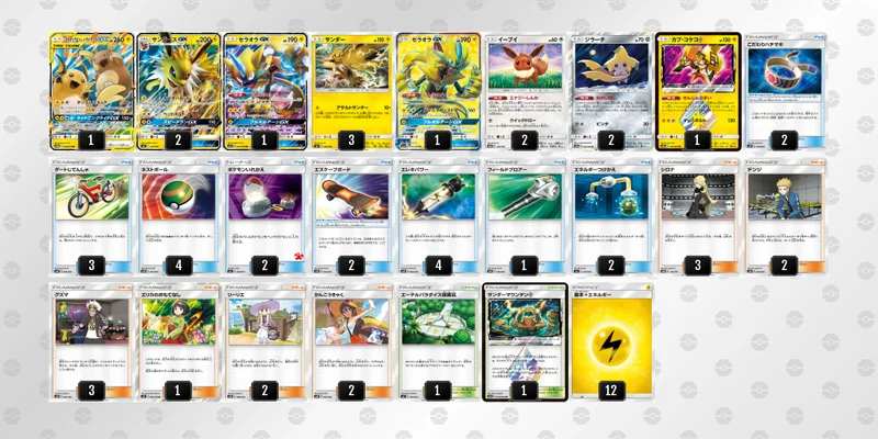 スピード重視の雷デッキですが、今考えるとちょっと欲張りすぎていたかもしれないですね。 タッグチーム環境ではサンダースはちょっと火力不足になりがちです。早い段階で相手の進化前たねをきぜつさせやすいのは魅力ではありますが、今の環境ではあんまりその対象が少ない気がしました。 手札からトラッシュに落とすカードも少なく、カプコケコも上手く起動できなかったです。 ジラーチで手札を増やすことも多いので、リーリエもあまり活躍しないことが多かったですね。シロナや、ちょっとだけ足りない火力を補うククイ博士とかのほうが良かったかもしれないです。