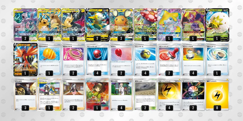 僕が今回持っていったデッキはイエローパーフェクションです。 雷はカッコいい、ライチュウがかわいい。あたりが主な理由です。 見ての通り、ミュウミュウを軸にした雷GXのデッキです。後攻パルスワンでそうでんを打ってミュウミュウに2枚エネつけ、次のターンにミュウミュウに手貼りしてフルドライブ。までをテンプレとして守りたいデッキです。もしくは、ミュウミュウにオーロラエネを付けてほしさがしでも良いです。 Bスタン落ちしてから大して強化もされてないのに雷wwwというのが正直なところですが、でも使いたかったんです。楽しむのが一番!(ここにサンダーマウンテンとカプコケコプリズムスターがいればよかったのに…とは本当に思う)