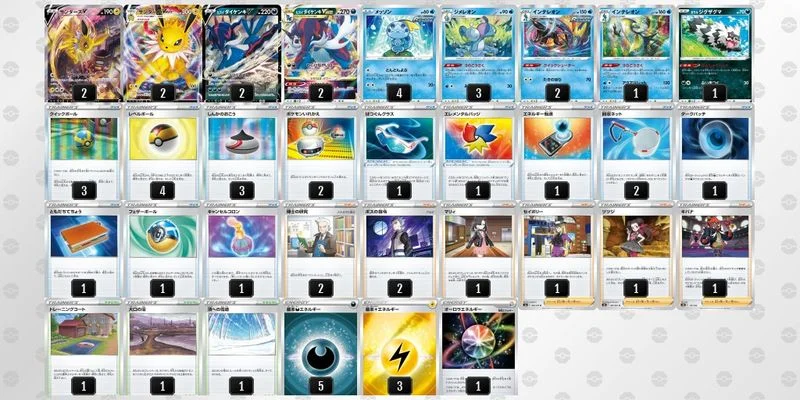 僕は雷系のポケモンに好きなポケモンが多いです。今回もどうにかなかでも戦えそうなサンダースを軸にデッキを組もうと考えました。 今回の環境TOPは間違いなくオリジンパルキアVSTARのデッキとミュウVMAXのデッキ。この2つのデッキにある程度の勝率をもてる必要があります。次点でアルセウス単。 そして3デッキに強めにメタをはれるアルセウスジュラルドンやハピナスミルタンク、ゼラオラフーパガラルファイヤーなどの非Vを中心としたデッキなどでほとんどのシェアが占められるだろうと予想しました。 なかでもミュウとパルキアは環境を二分しているだけあって、そもそものデッキパワーがめちゃ高いです。なので、トップ2つに強い対策をしつつ自分のデッキがうまく回るようにすれば、自ずと広い対策になると考えました。