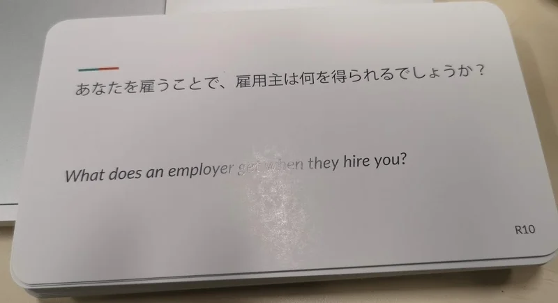 カードの質問に関して回答した内容に対して、深掘りの質問をします。 「なぜそれを選んだのか?」「その回答をした理由はなんですか?」などなど。 感想にも書くのですが、きっとここがキモなんだと感じます。うやむやに終わらせることも当然可能だと思うので。