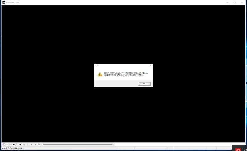 MonsterXの標準ソフトが何回やっても「前回異常終了したため、デバイスを初期化することができません。この問題を解決するために、パソコンを再起動してください。」と出ます。